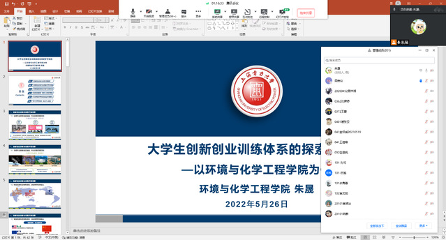为激发学生创新创业热情,培养创新创业能力,帮助学生了解学院创新创业训练体系和学分设置情况,5月26日晚,我院在线上举办了以“大学生创新创业训练体系的探索与实践—以9001cc金沙为例”为主题的学院创新创业宣讲会,这是学校双创宣讲会系列之一,由学院双创导师朱晟老师主讲,两百余名师生参加了本次会议。