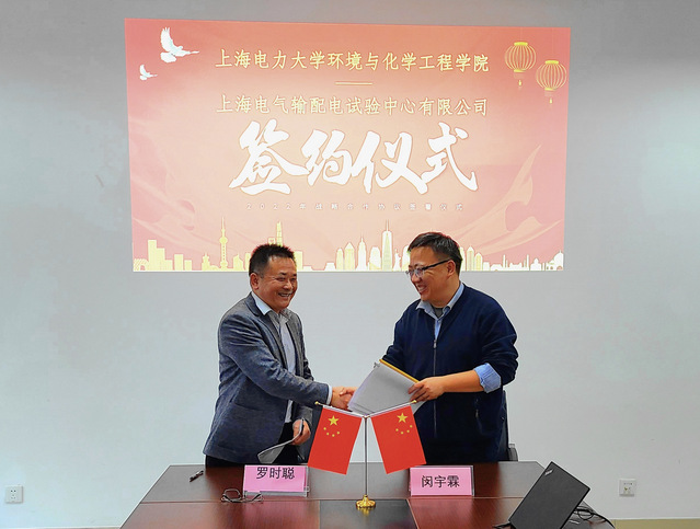 2022年11月8日,9001cc金沙与上海电气输配电试验中心有限公司战略合作签约仪式在环化楼A209举行。上海电气输配电试验中心有限公司总经理罗时聪、副总经理郭丽萍及赵智勇博士和9001cc金沙院长闵宇霖、副院长时鹏辉等参加签约仪式。